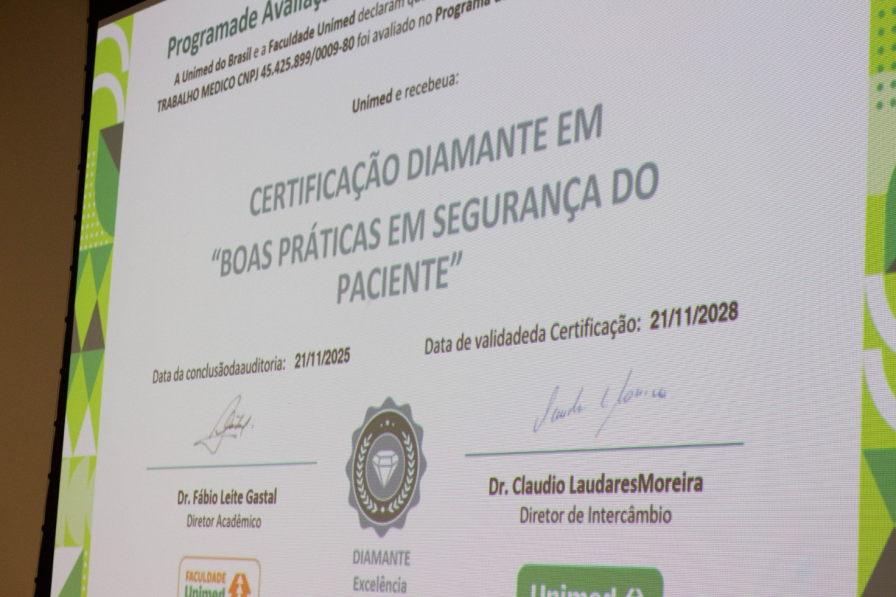 A certificação “Diamante” valida a conformidade da instituição com critérios rigorosos de segurança do paciente, gestão de riscos e qualidade assistencial. Essa conquista é resultado direto do trabalho incansável de todas as equipes assistenciais, médicas e de apoio da Unimed Botucatu.