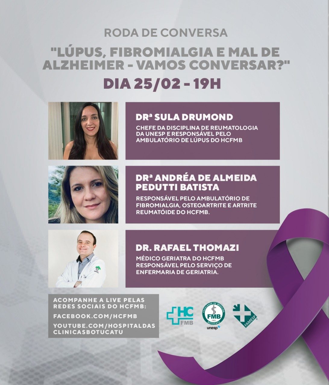 Quer saber mais sobre Fibromialgia, Lúpus e Mal de Alzheimer? Tire todas as suas dúvidas na próxima quinta-feira, 25, a partir das 19h!