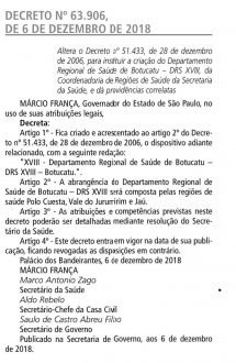 Foi decretado pelo Governador Márcio França no Diário Oficial desta quinta-feira, 07, a volta da Regional de Saúde para Botucatu. O decreto número 63. 906 na verdade cria a DRS XVIII, Departamento Regional de Saúde de Botucatu.