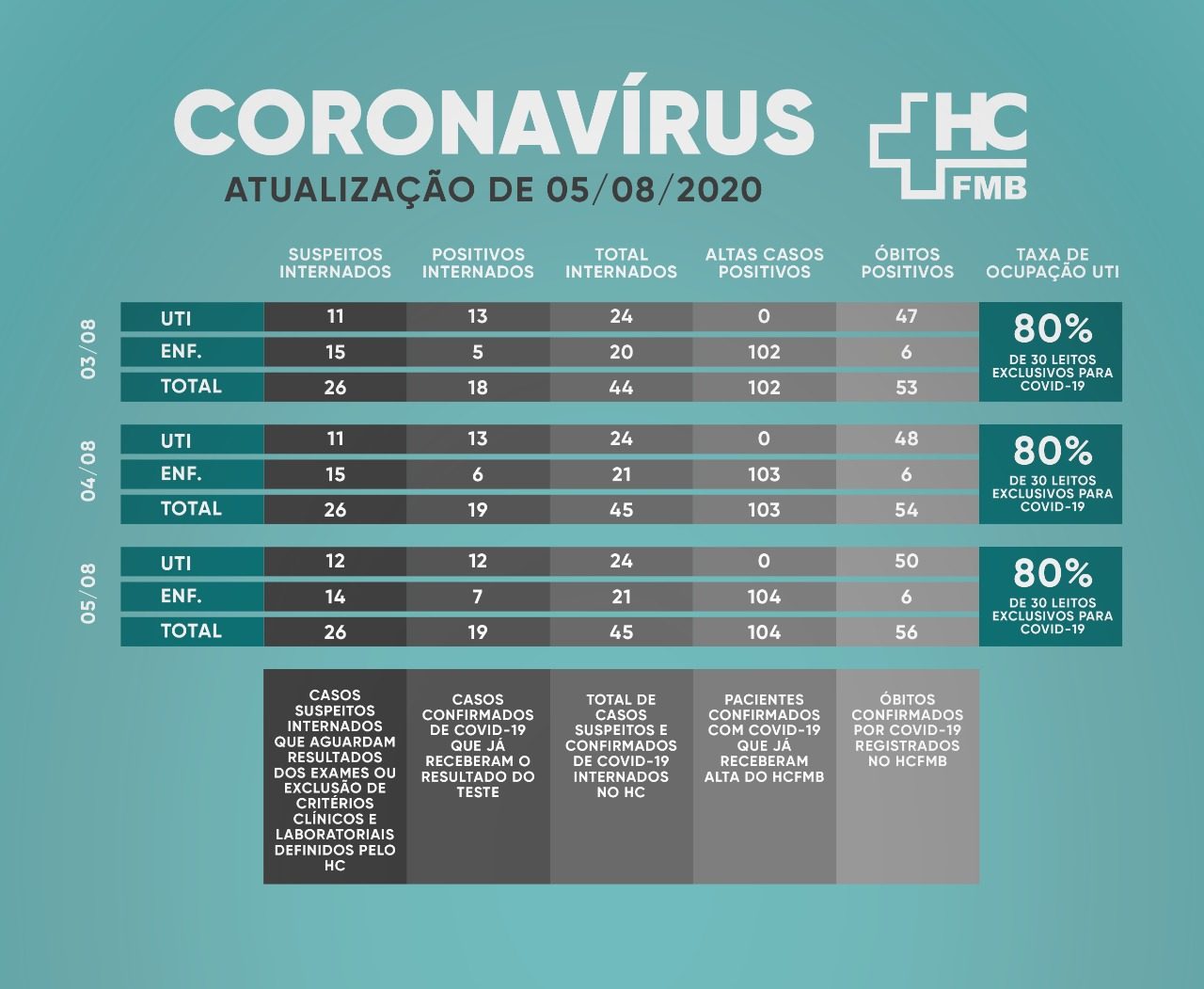 O Hospital das Clínicas da Faculdade de Medicina de Botucatu (HCFMB) atualizou suas principais informações sobre o coronavírus nesta quarta-feira, 05.