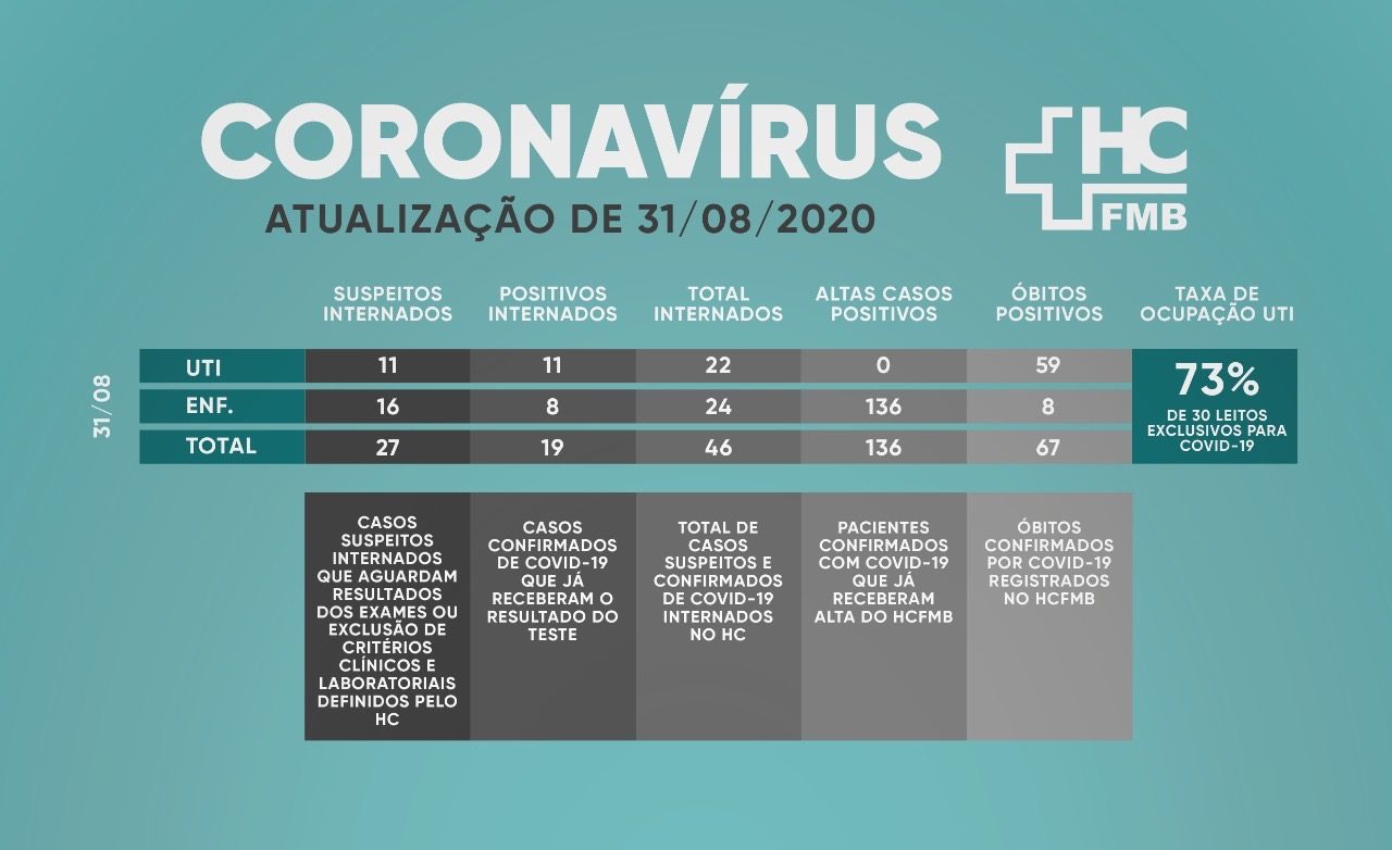 O HCFMB contabiliza o total de 67 óbitos por COVID-19, sendo: