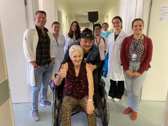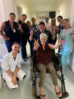 Depois de uma dura, porém vitoriosa batalha contra a doença, a paciente recebeu uma homenagem preparada pelos profissionais da saúde HCFMB antes de deixar a unidade.