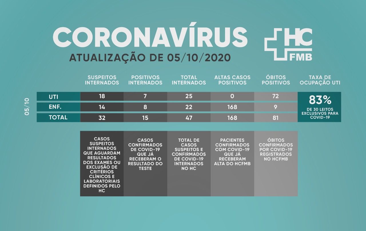 O Hospital das Clínicas da Faculdade de Medicina de Botucatu (HCFMB) atualizou na manhã desta segunda-feira, dia 05, suas principais informações sobre o coronavírus.