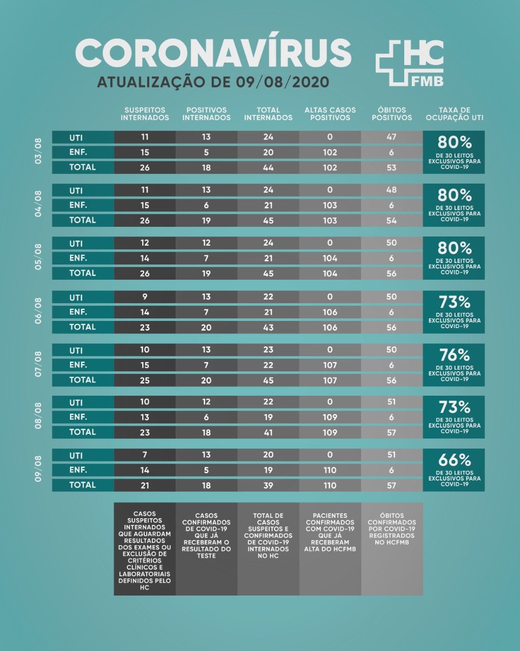 O Hospital das Clínicas da Faculdade de Medicina de Botucatu (HCFMB) atualizou neste domingo, dia 09, suas principais informações sobre o coronavírus.