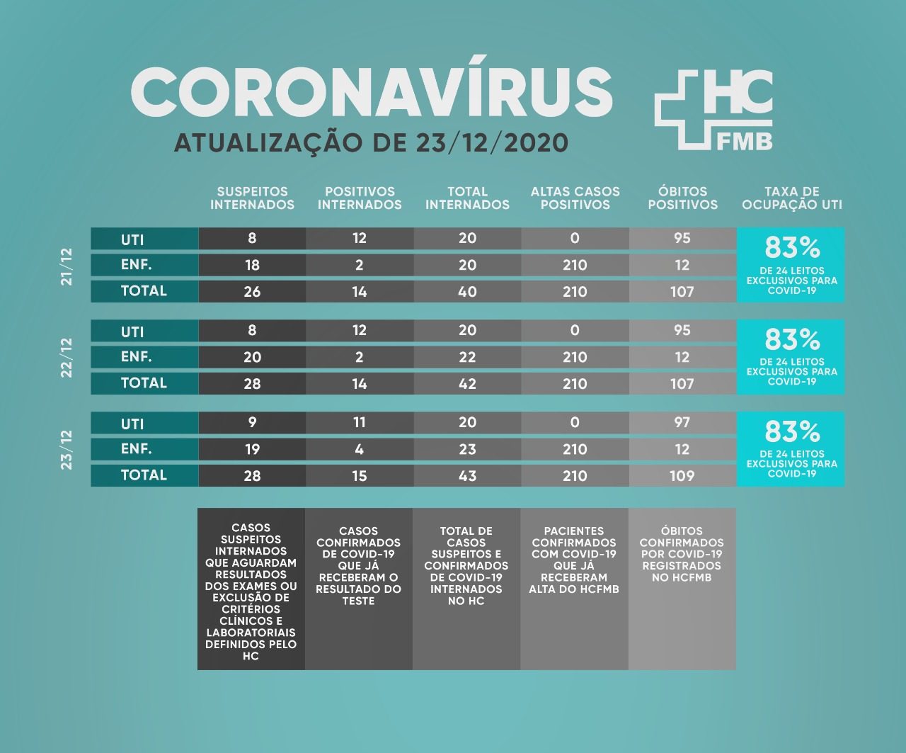 O Hospital das Clínicas da Faculdade de Medicina de Botucatu (HCFMB) atualizou nesta quarta-feira, dia 23, suas principais informações referentes à COVID-19.