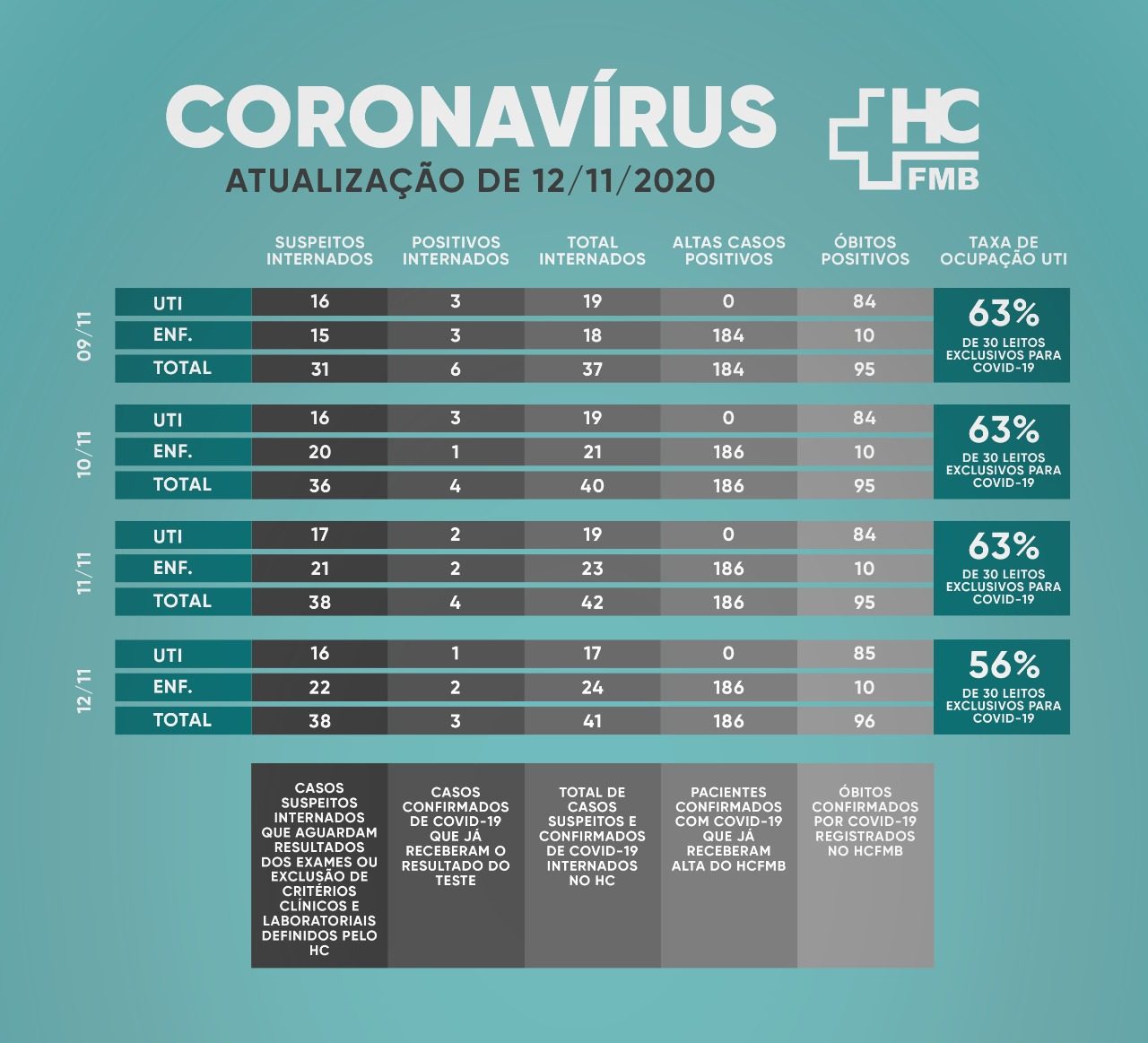 O Hospital das Clínicas da Faculdade de Medicina de Botucatu (HCFMB) atualizou na tarde desta quinta-feira, dia 12, suas principais informações referentes à COVID-19.