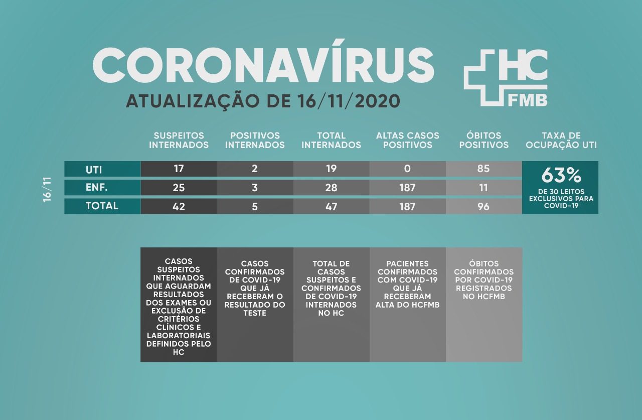 O Hospital das Clínicas da Faculdade de Medicina de Botucatu (HCFMB) atualizou na tarde desta segunda-feira, dia 16, suas principais informações referentes à COVID-19.
