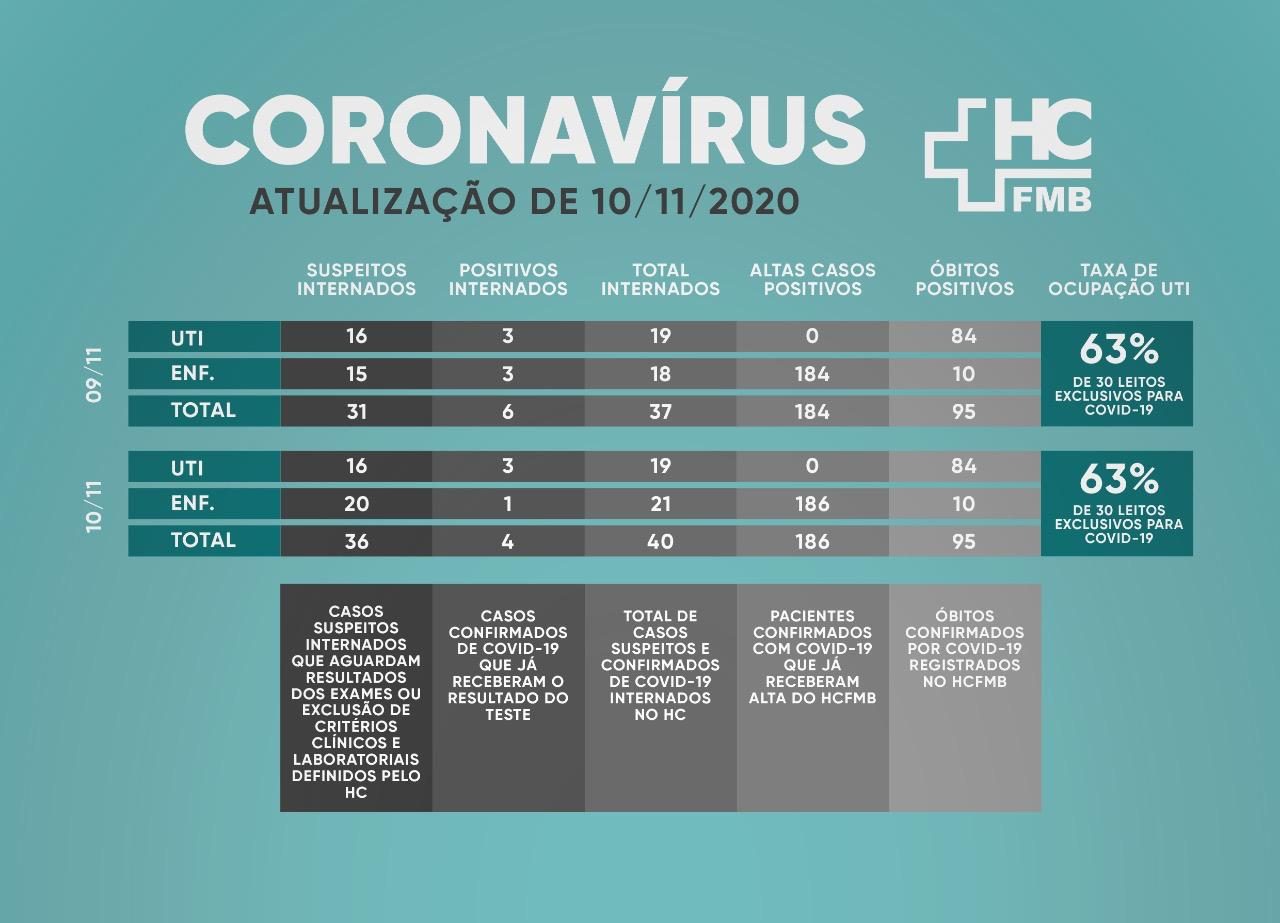 O Hospital das Clínicas da Faculdade de Medicina de Botucatu (HCFMB) atualizou na manhã desta terça-feira, dia 10, suas principais informações referentes à COVID-19.