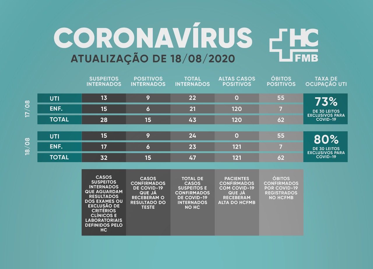 O Hospital das Clínicas da Faculdade de Medicina de Botucatu (HCFMB) atualizou nesta terça-feira, dia 18, suas principais informações sobre o novo coronavírus.